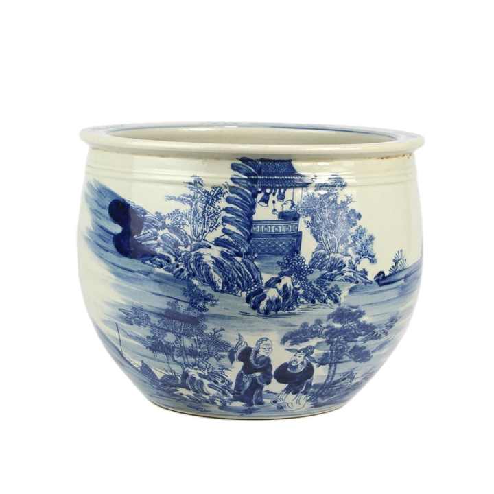 กระถางบอนไซเซรามิกลายดอกไม้วาดมือโบราณเมืองจิ่งเต๋อเจิ้น รุ่น RZMW01