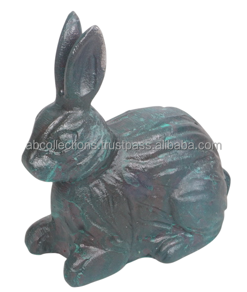 รูปปั้นสัตว์อลูมิเนียมโบราณรูปกระต่ายสีเขียวสำหรับตกแต่งบ้านและงานหล่อศิลปะผนังสวน