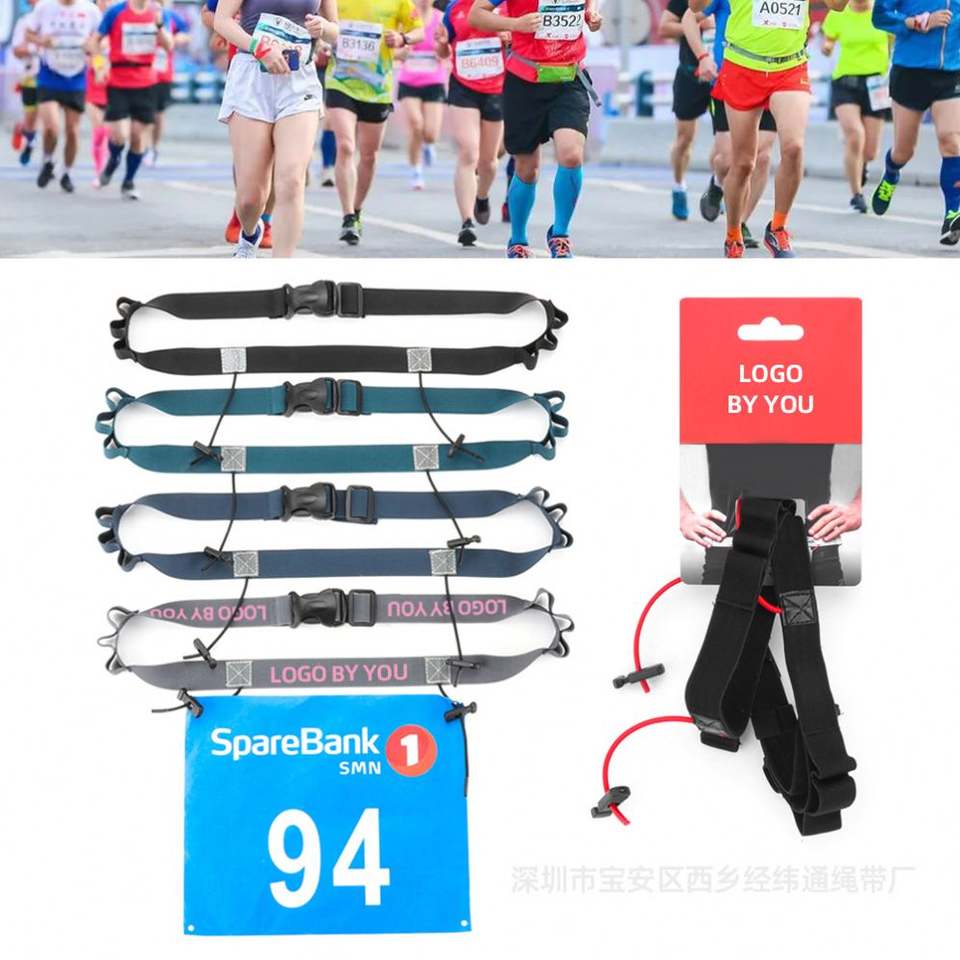 Stainless Steel Race Number Bib Belts 6 Energy Gel Loops Foldable for Marathon Triathlon Running-No Safety Pins Required (Black