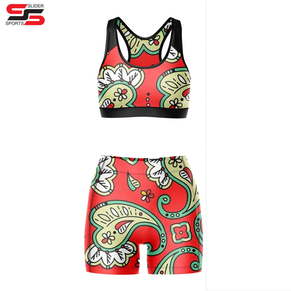 Racer-Back Sports Bra And Sexy Booty Short Sublimation Printed Sexy Bra And Short For You In Wholesale Cheap Rate With Your Logo