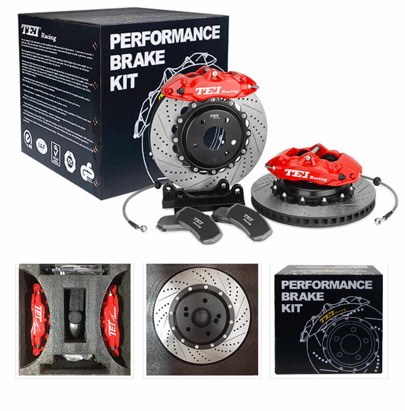 ชุดคาลิปเปอร์เบรกใหญ่สำหรับรถแข่ง 4 ลูกสูบ พร้อมจานเบรกขนาด 330x28 มม. สำหรับรถยนต์ฮอนด้า แจ๊ส ฟิต GK5 ปี 2001-2019 ล้อขนาด 17 นิ้ว