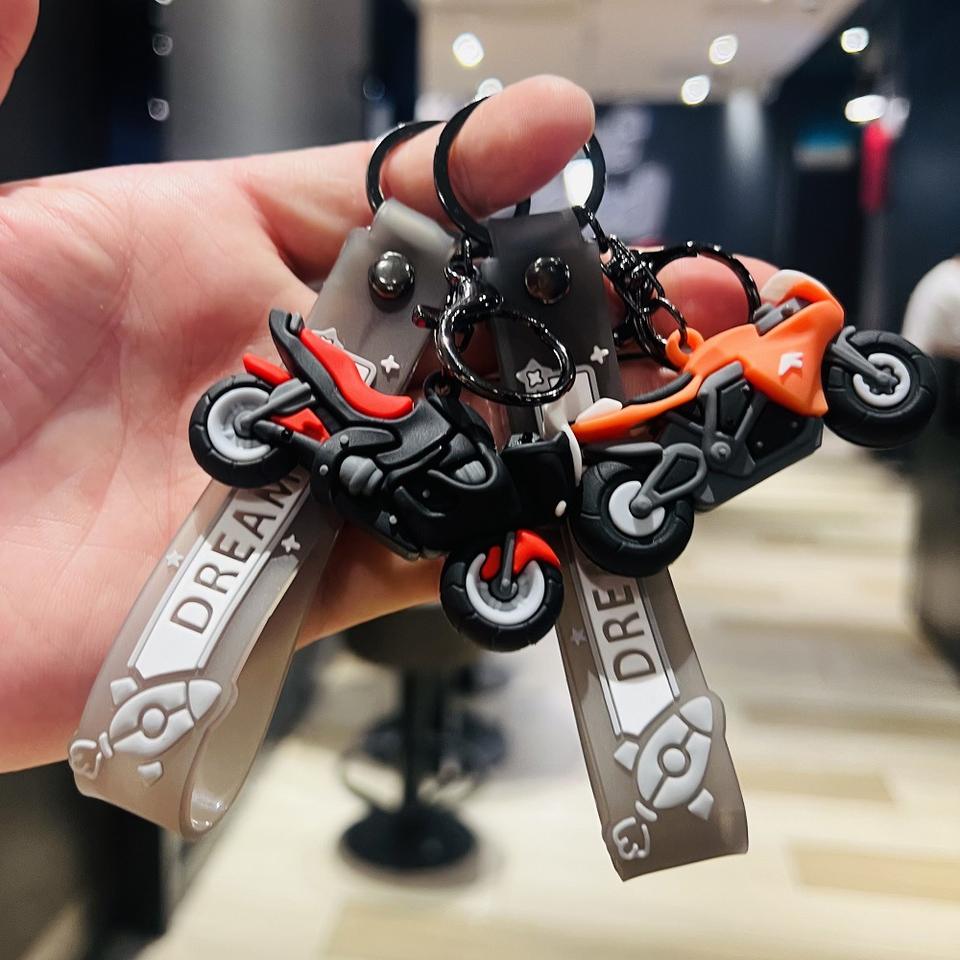 พวงกุญแจรถแข่งมอเตอร์ไซค์ ทำจาก PVC ทนทาน พร้อมห่วงคาราไบเนอร์ ออกแบบ 3 มิติ พิมพ์ลายซิลค์สกรีน รูปทรงการ์ตูน