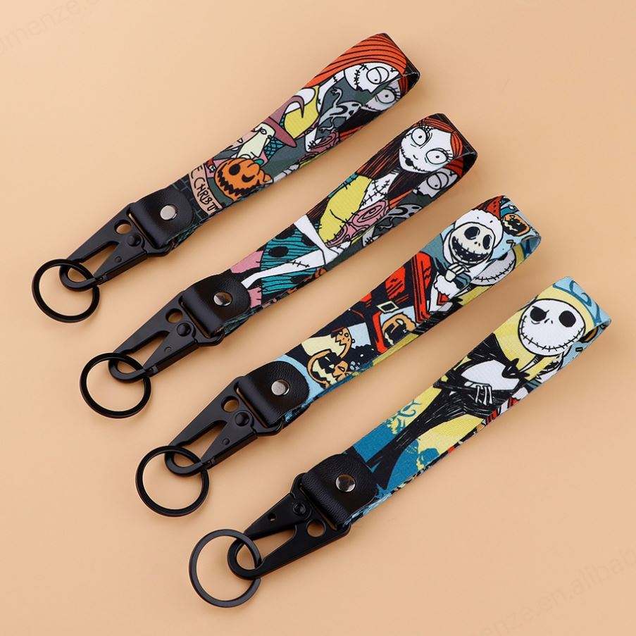 สายคล้องข้อมือลายเรซซิ่งสเกลลิงตัน, สายคล้องพวงกุญแจลายฝันร้ายฮาโลวีน, สายคล้องพร้อมพวงกุญแจตะขอสีดำ