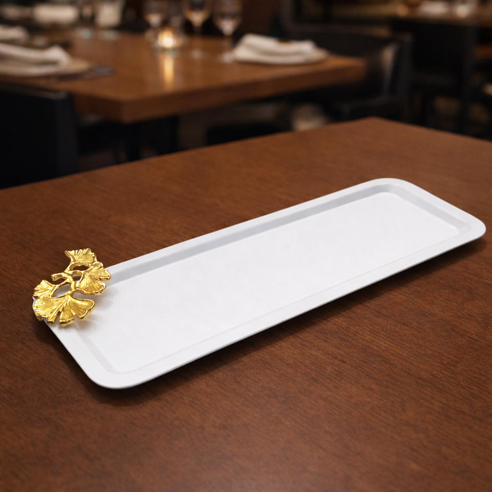 ชั้นวางถาดเสิร์ฟโลหะแบบพรีเมี่ยมถาดโลหะสำหรับโรงแรมหรูหราถาดเสิร์ฟแบบโบราณ