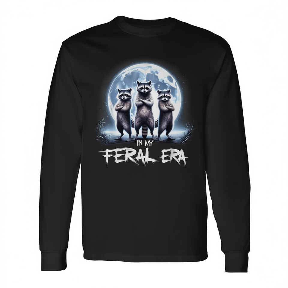 แรคคูนร้องเสียงที่ดวงจันทร์ในเสื้อยืดแขนยาวยุคเฟอร์เรลของฉัน