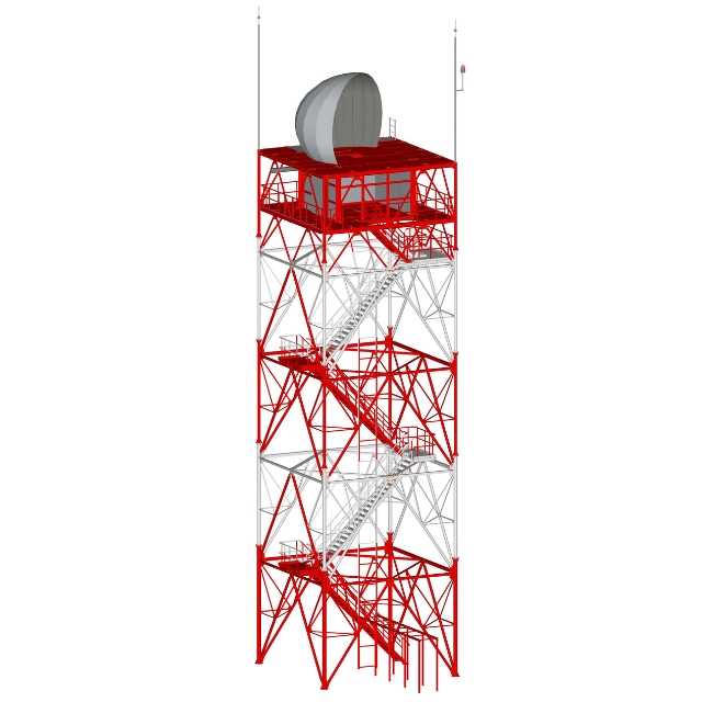 หอคอยเรดาร์สำหรับการวัดสภาพอากาศและอุตุนิยมวิทยา แบบตั้งพื้นพร้อมห้องควบคุมและโดมครอบเรดาร์