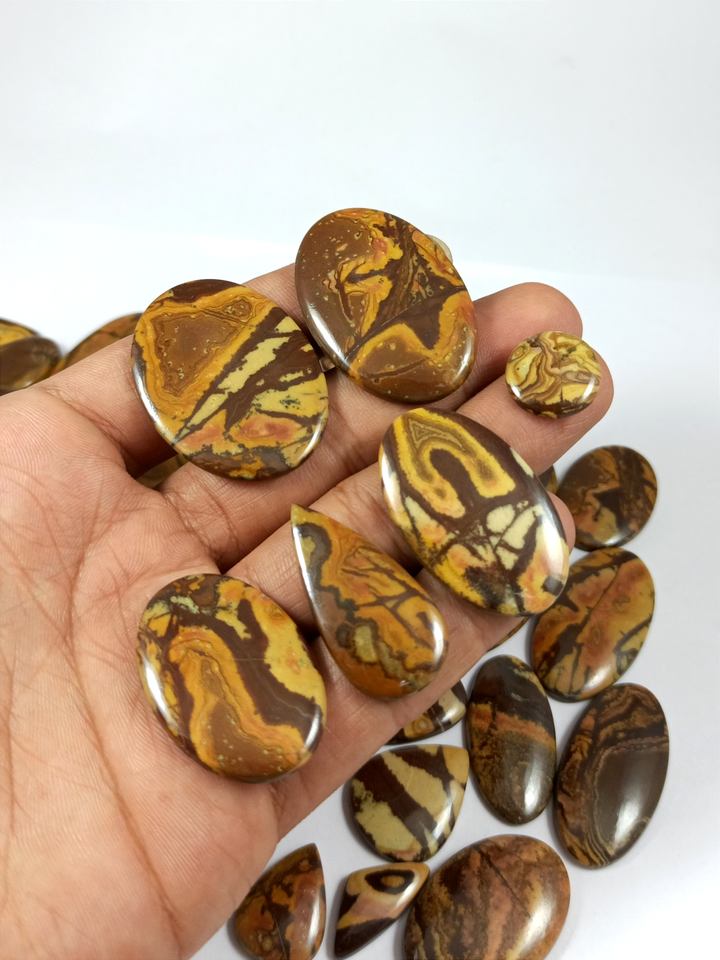 พลอยแจสเปอร์ออสเตรเลียสีน้ำตาลธรรมชาติ รูปทรงผสมแบบคาโบชอง ขายส่ง สำหรับงาน DIY งานฝีมือ จี้ สร้อยคอ เครื่องประดับ