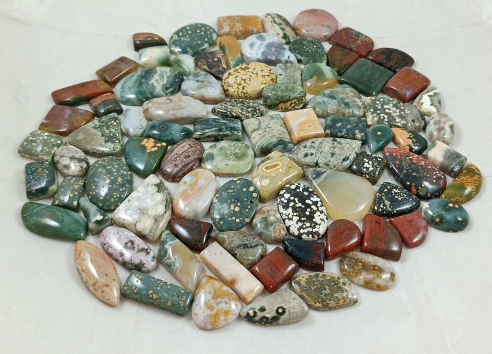 Radha Arts หินควอตซ์แจสเปอร์ทะเลธรรมชาติทรงหลวมหลังเบี้ยอัญมณีรูปทรงผสมและขนาดเครื่องประดับทำ