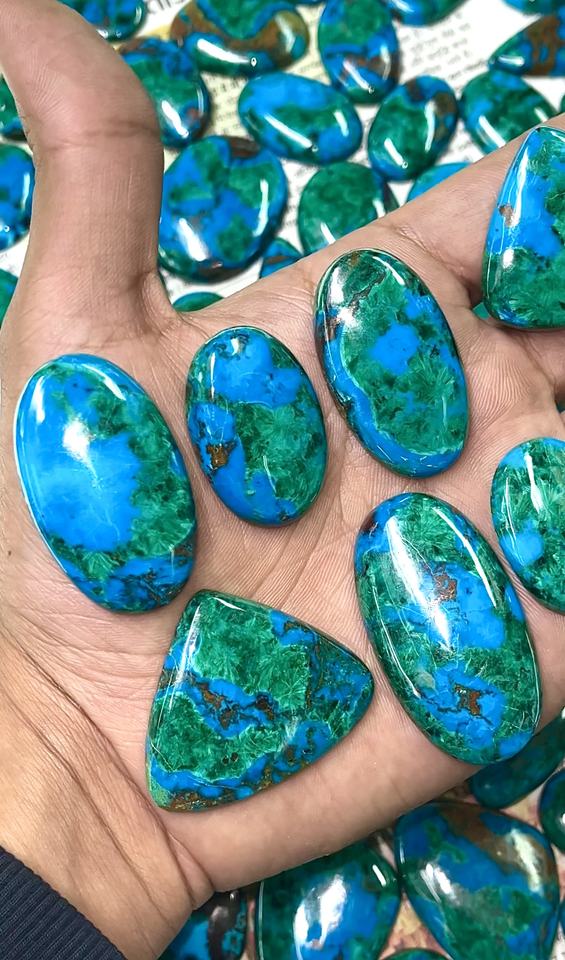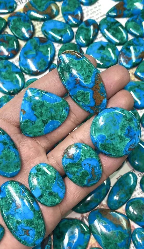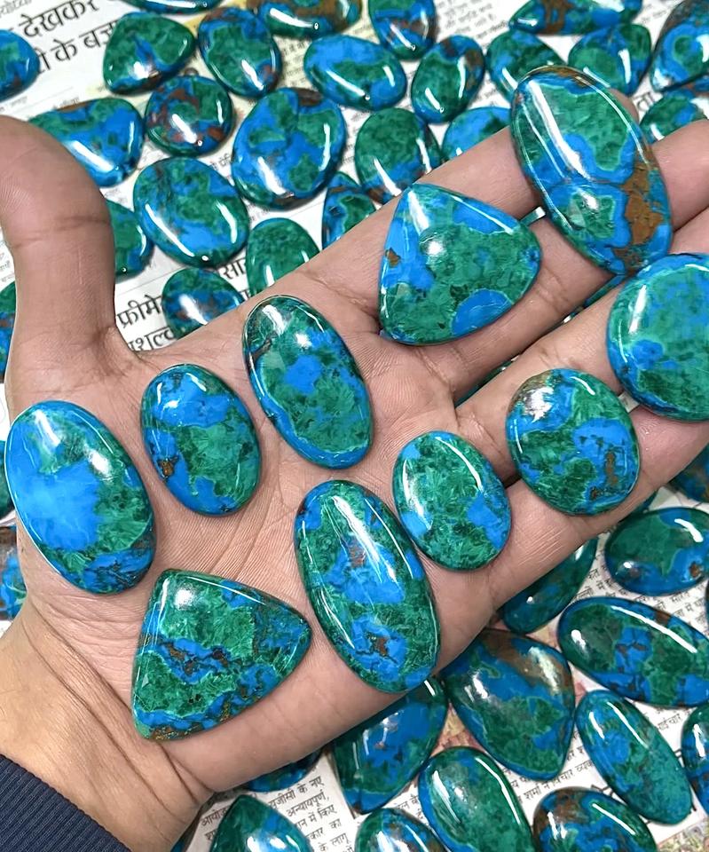 รัฐอาร์ตส์ ขายส่งคริสตัลธรรมชาติ คริสโซคอลล่า มาลาไคต์ คริสตัลบำบัดแบบคาโบชอง พลอยหลวมสำหรับทำเครื่องประดับเงิน รัฐราชสถาน คุณภาพสูง