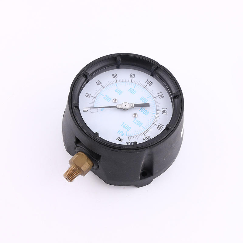 เกจวัดแรงดันแบบเรเดียล ขนาด 113 มม. ตัวเรือนโพลีโพรพิลีน พร้อมข้อต่อทองแดงและหน้าปัดกระจก สำหรับงานก๊าซ