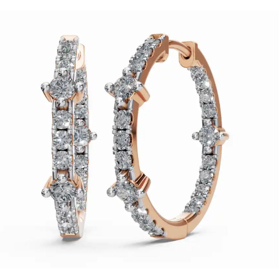 ต่างหูเพชรทรงกลม Radiances Vow ทอง 9 KT 14 KT 18 KT งานเจียระไนแบบกลม ผลิตจากเพชรเลี้ยงในห้องปฏิบัติการ ขายส่งเครื่องประดับ รับผลิตแบบ OEM สำหรับธุรกิจ B2B ผู้ส่งออก