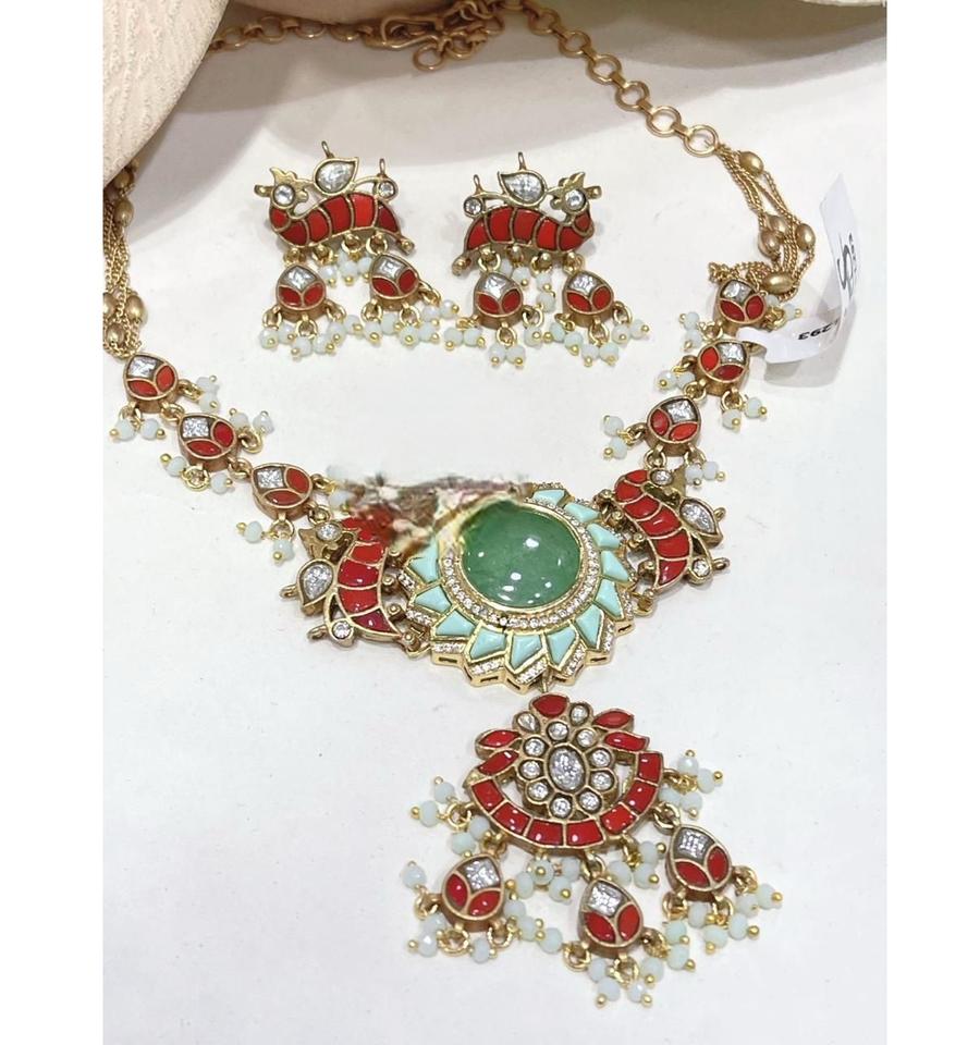 ชุดสร้อยคอพร้อมต่างหูงานแฮนด์เมดเคลือบทองคุณภาพเยี่ยม ดีไซน์โดดเด่น เหมาะสำหรับงานแต่งงาน