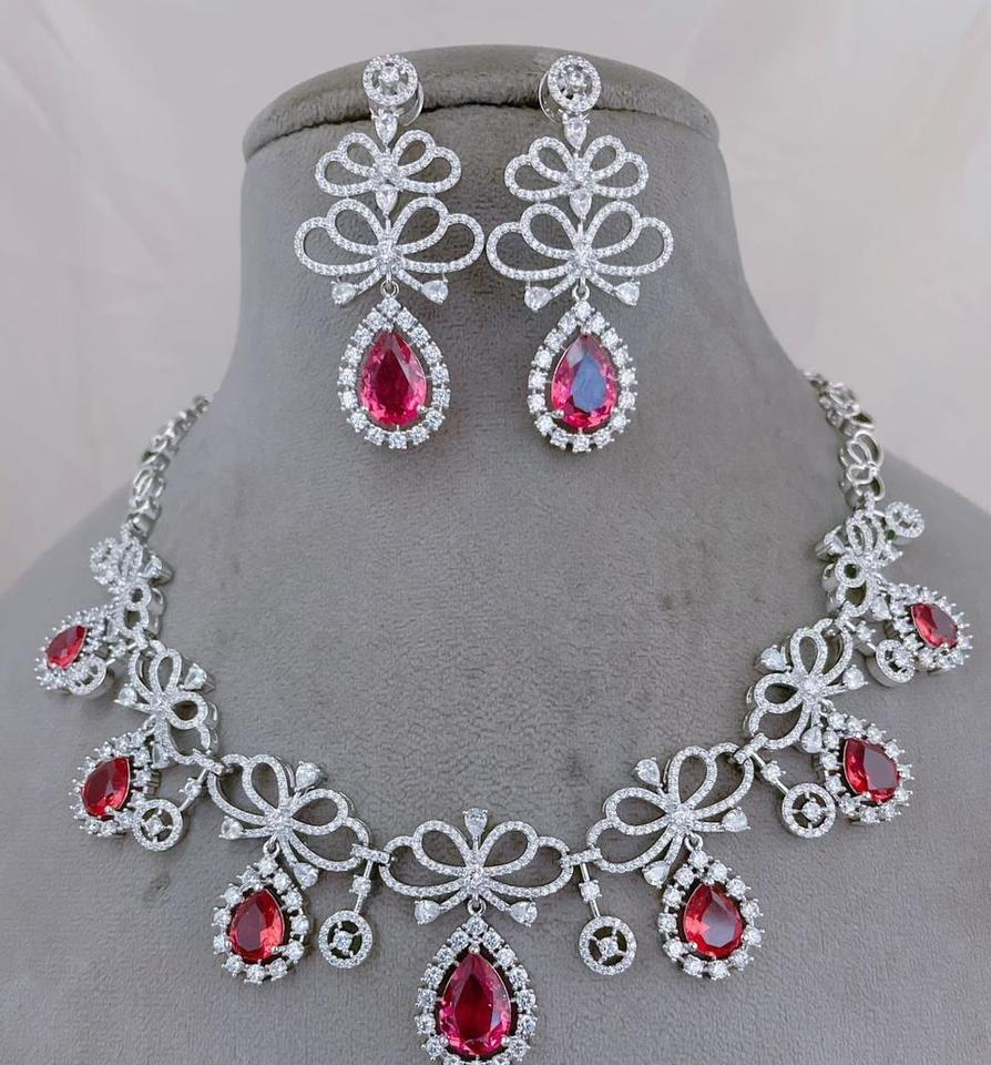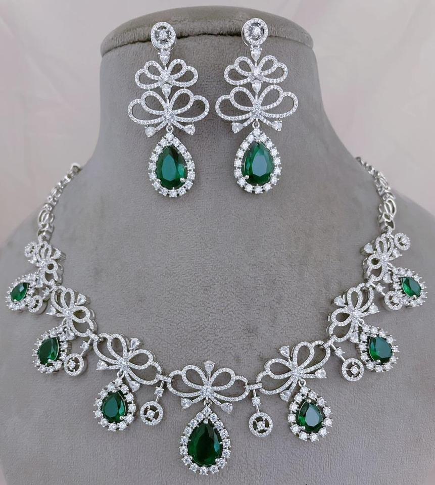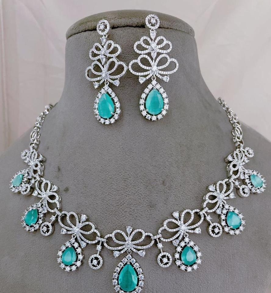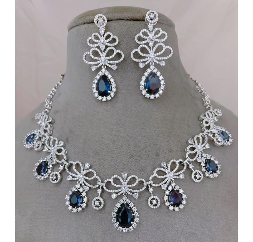 Radiant Best Quality Trendy Designer Silver Plated Zircon Stones Necklace Set Earrings Party Wedding Wear Collection Women