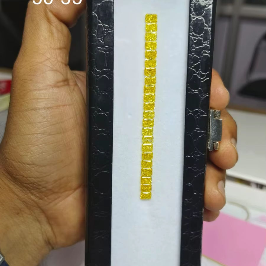 เพชรเหลืองแฟนซีทรงเหลี่ยมเจียระไนแบบหลวม ผลิตในห้องปฏิบัติการ ความใสระดับ VVS-VS เหมาะสำหรับแหวนหมั้นและเครื่องประดับ