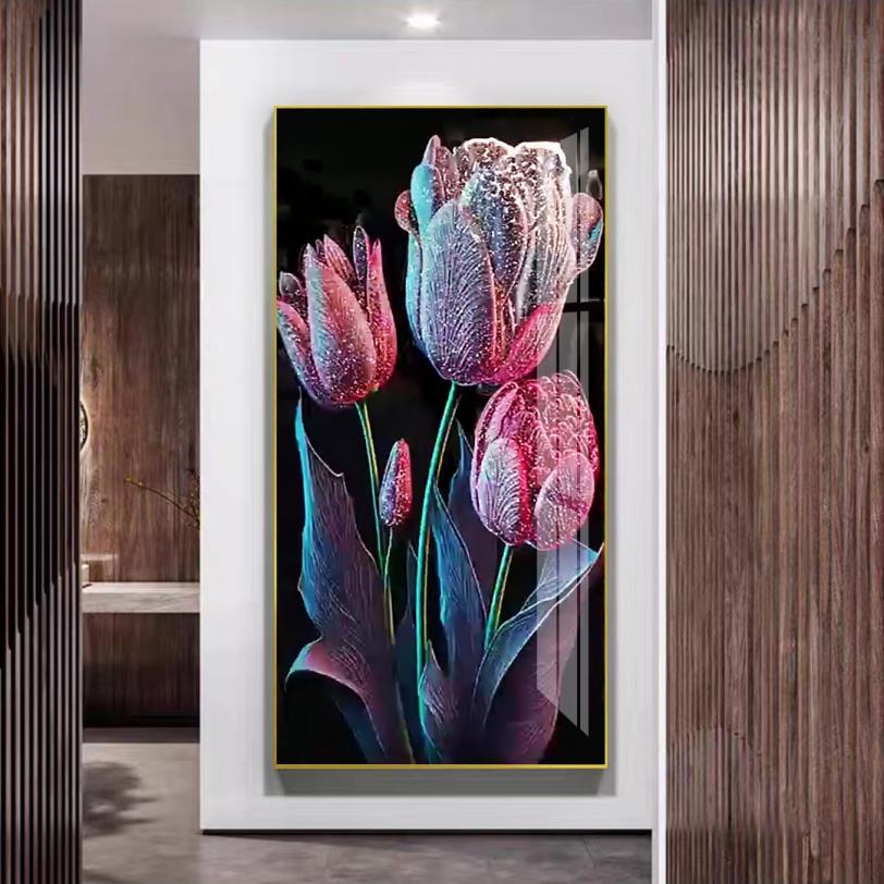 เสน่ห์อันเปล่งประกาย: ภาพวาดแขวนผนังลายกุหลาบประดับคริสตัลบนกระเบื้องพอร์ซเลน พร้อมไฟ LED