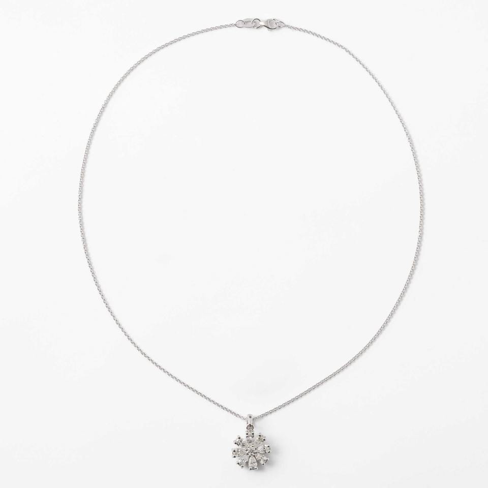 จี้เพชรทรงรัศมี 0.10 กะรัต เพชรเลี้ยงในห้องปฏิบัติการ ประดับแบบหนามเตย รูปดอกไม้ สร้อยคอทองคำขาว 14K พร้อมตัวล็อกแบบก้ามปู เครื่องประดับผู้หญิงสุดหรู