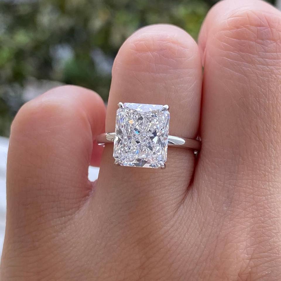 แหวนเพชรเม็ดเดี่ยวทรงเรเดียนท์คัท 1.00 กะรัต สี E ความสะอาด VVS2 เพชรเลี้ยงในห้องปฏิบัติการ รับรองโดย IGI ตัวเรือนทอง 10K/14K/18K แบบหนามเตย