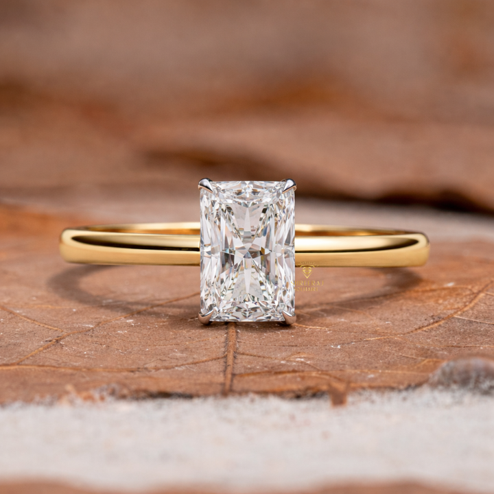 แหวนหมั้นเพชรทรงเรเดียนท์คัท เพชร CVD HPHT เพชรเลี้ยงในห้องปฏิบัติการ รับรองโดย IGI ทองคำแท้ 14K 18K แหวนแต่งงานเพชรสำหรับผู้หญิง