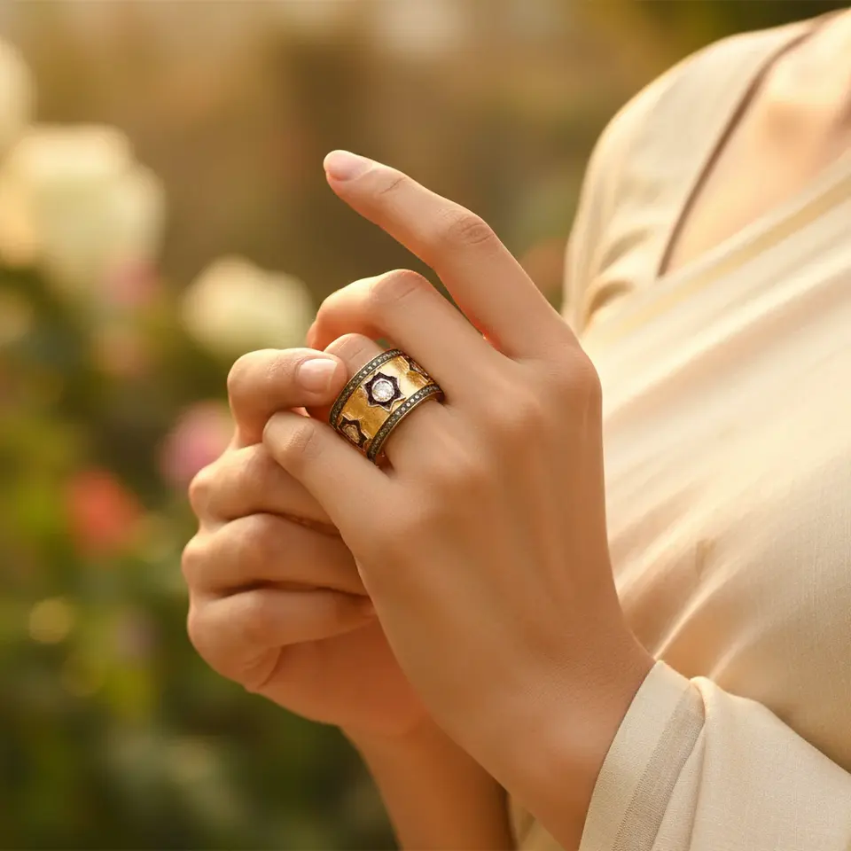 เพชรทรงเรเดียนท์คัทและอัญมณี เครื่องประดับชั้นดี ดีไซน์เฉพาะตัว ทองเหลืองและทองขาว (14K)