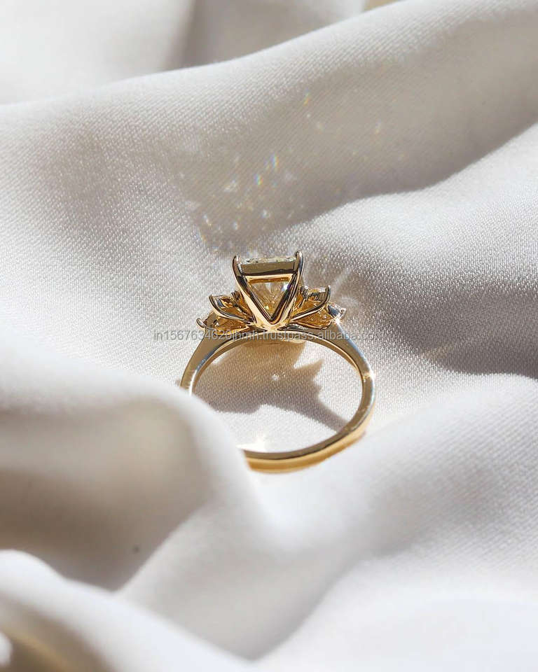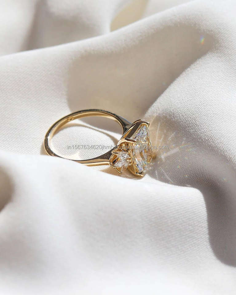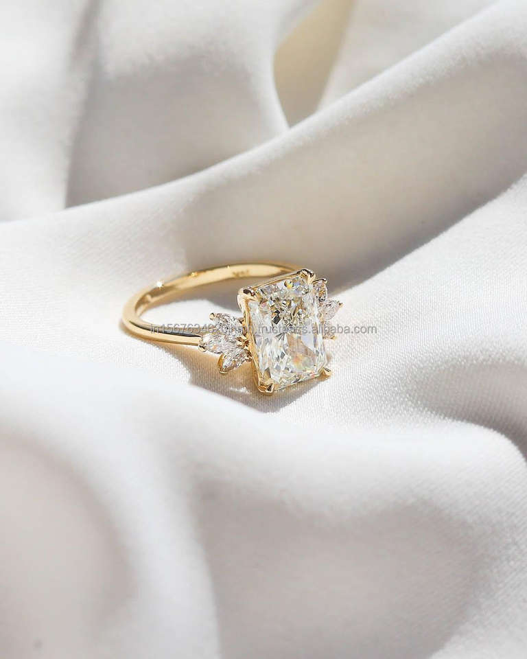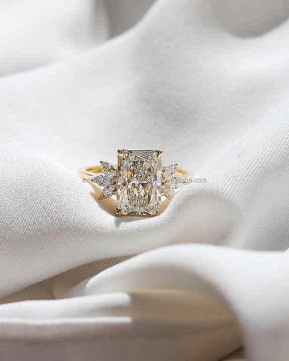 แหวนเพชรทรงเรเดียนท์คัท ทองคำขาว ประดับด้วยเพชรทรงมาร์คีส์ด้านข้าง แหวนหมั้นสุดหรู เครื่องประดับชั้นดีสำหรับผู้หญิง