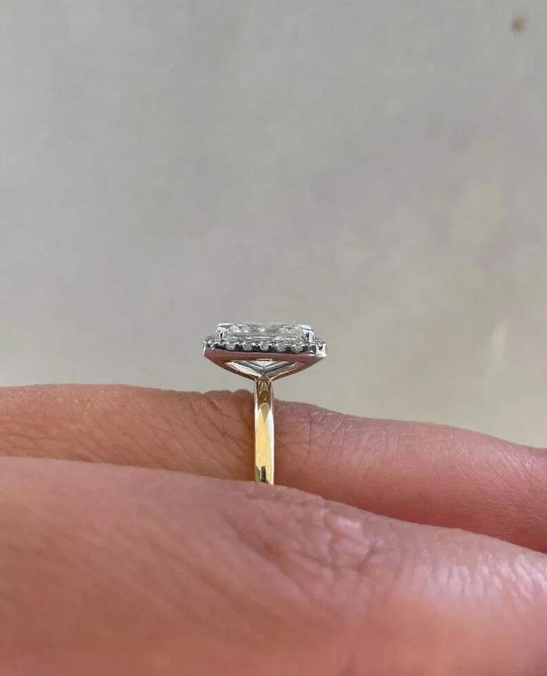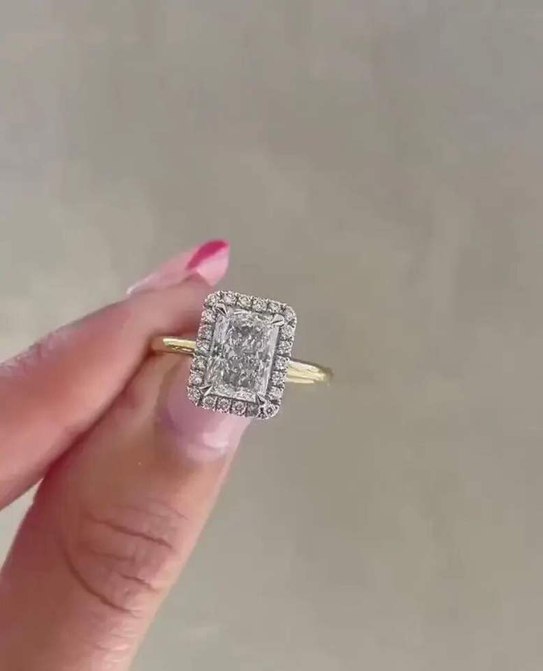 แหวนหมั้นเพชรทรงเรเดียนท์คัทแบบฮาโล เพชรเลี้ยงในห้องปฏิบัติการ ชุบโรเดียมสีดำ ทองคำขาว รับรองโดย IGI สำหรับงานแต่งงาน วันครบรอบแต่งงาน และเจ้าสาว