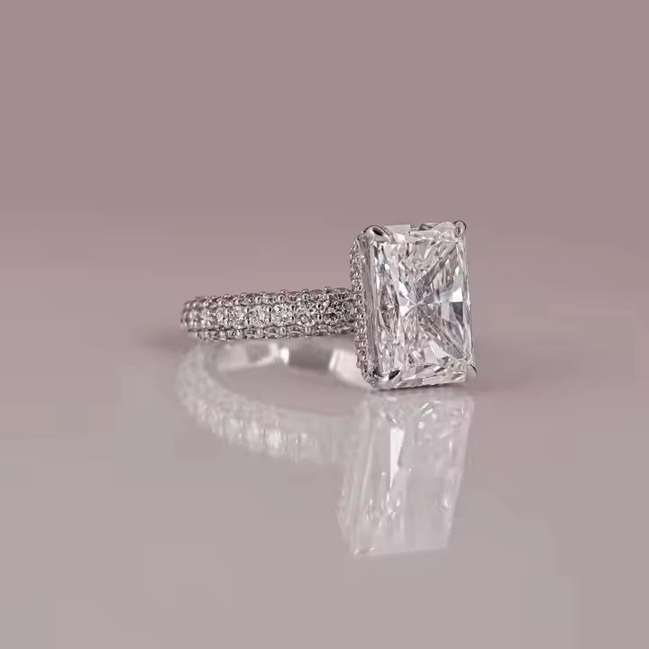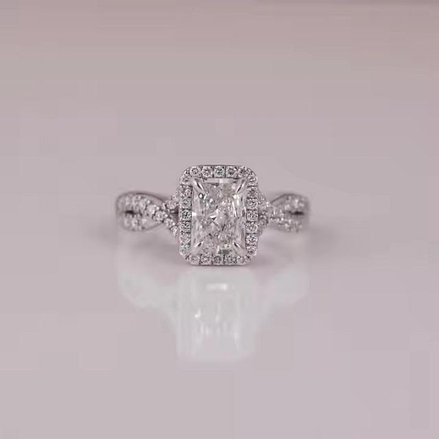 แหวนหมั้นเพชรแบบขัดแย้งชุบทองแข็ง10/14/18 KT แหวนหมั้นเพชรที่ตั้งคลัสเตอร์เพชรจาก Radiant CUT Lab
