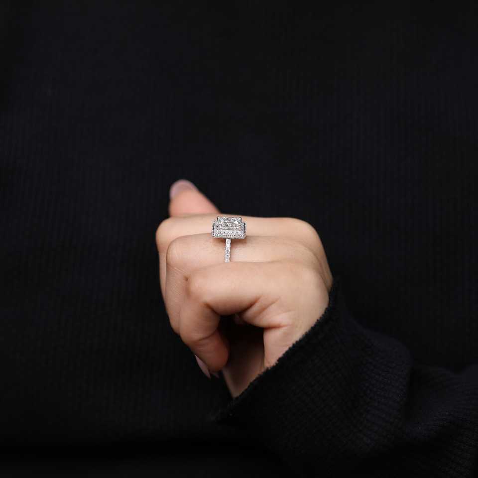 แหวนหมั้นเพชรเม็ดเดี่ยวสำหรับเจ้าหญิงรัศมี14K/10K ได้รับการรับรองจาก rhodium PT950 PVP