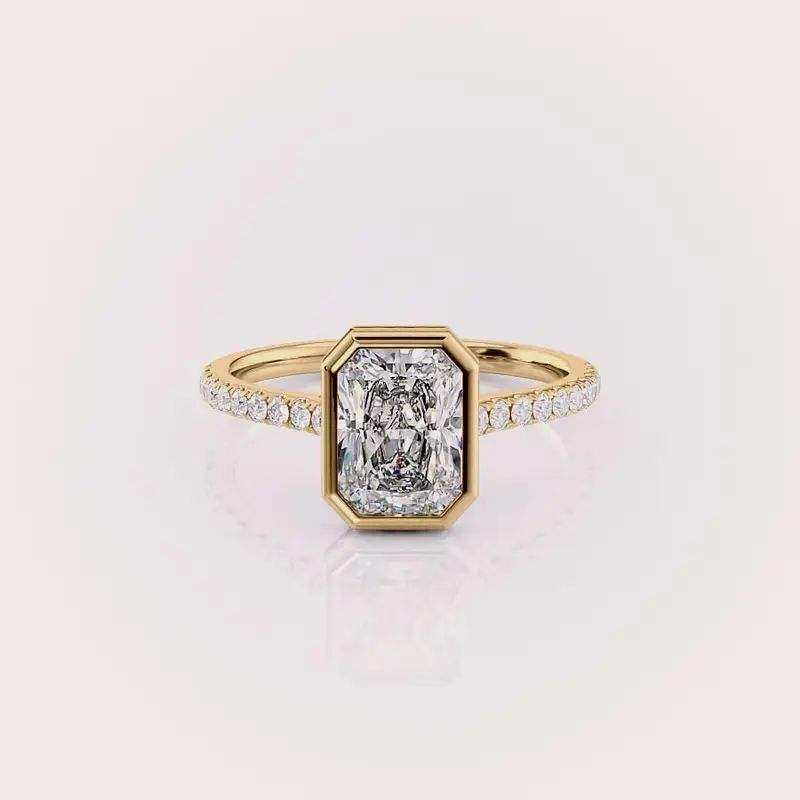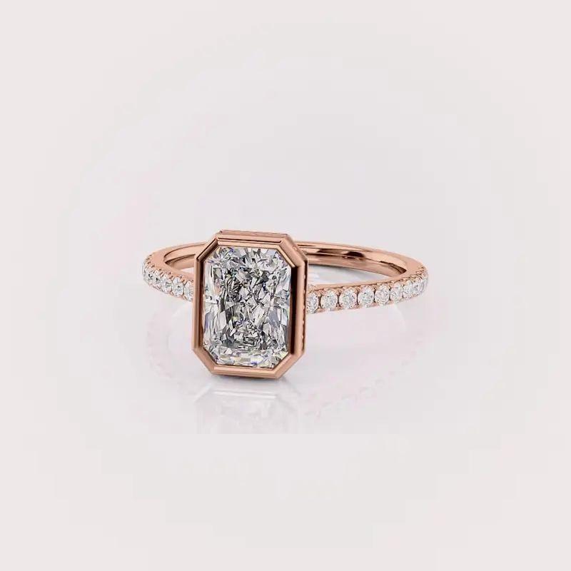 แหวนเพชรทรงเรเดียนท์คัท เพาะเลี้ยงในห้องปฏิบัติการ ประดับขอบเพชรแบบเบเซล สำหรับผู้หญิง ทำจากทอง 14K สีเหลือง/สีโรสโกลด์/สีขาว พร้อมวงแหวนชุบโรเดียม ดีไซน์หรูหรา