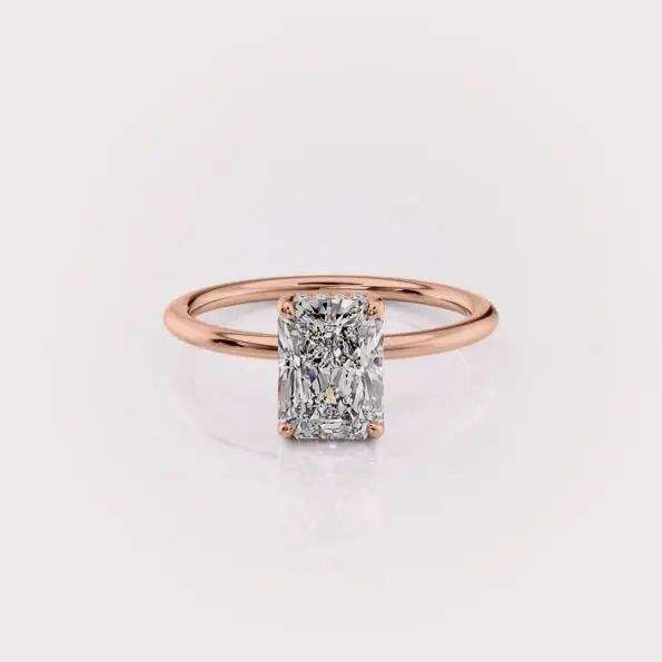 แหวนหมั้นเพชรทรงเรเดียนท์คัท เพาะเลี้ยงในห้องปฏิบัติการ พร้อมวงแหวนซ่อนรอบเพชร | เครื่องประดับทองคำขาว/ทองชมพู/ทองเหลือง 18K แบบสั่งทำพิเศษ