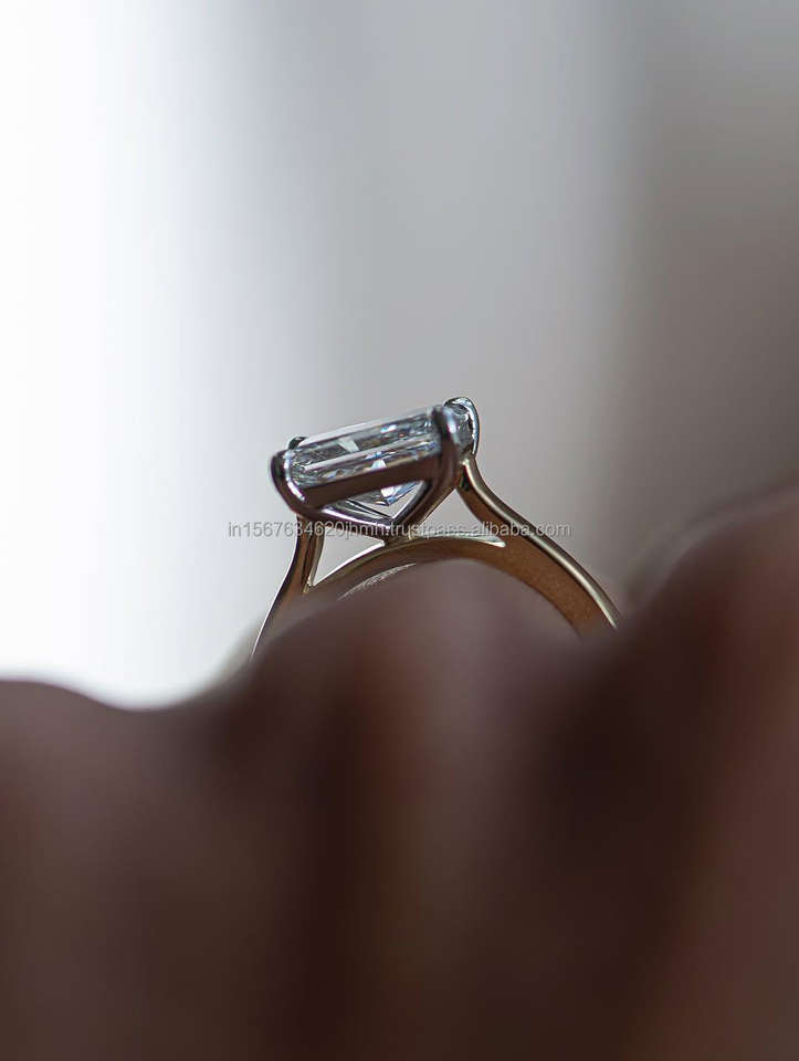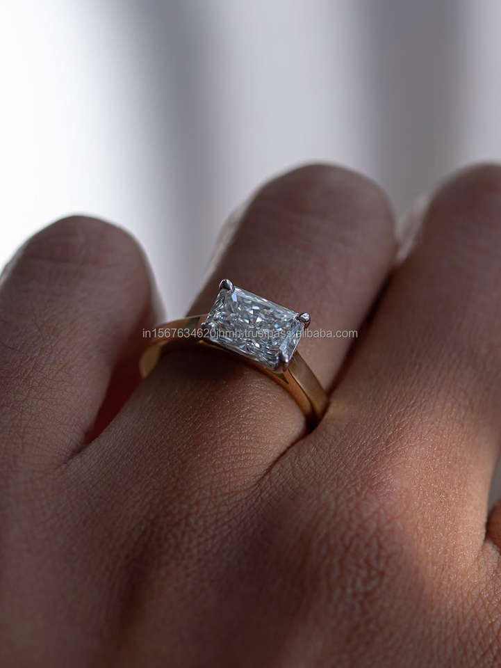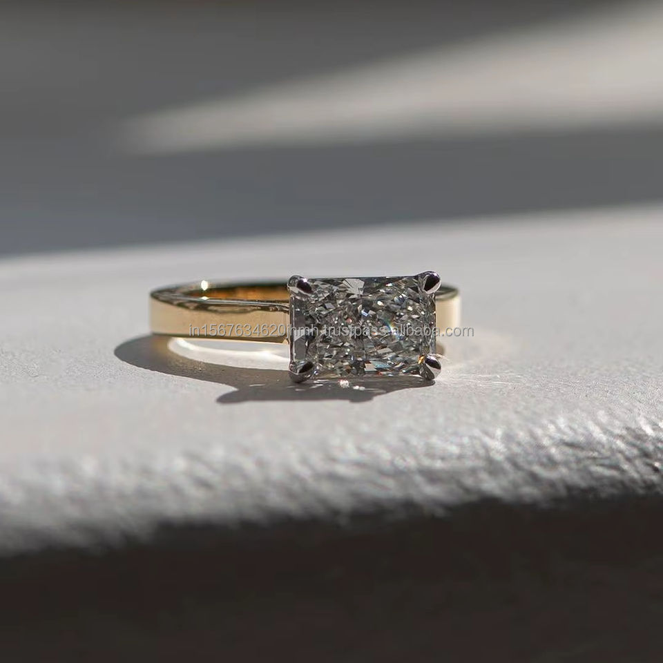 แหวนหมั้นเพชรทรงเรเดียนท์คัท เพชรเพาะเลี้ยงในห้องปฏิบัติการ ตัวเรือนทองคำเหลือง 10K/14K/18K แหวนแต่งงานเพชรเรเดียนท์คลาสสิกสำหรับผู้หญิง