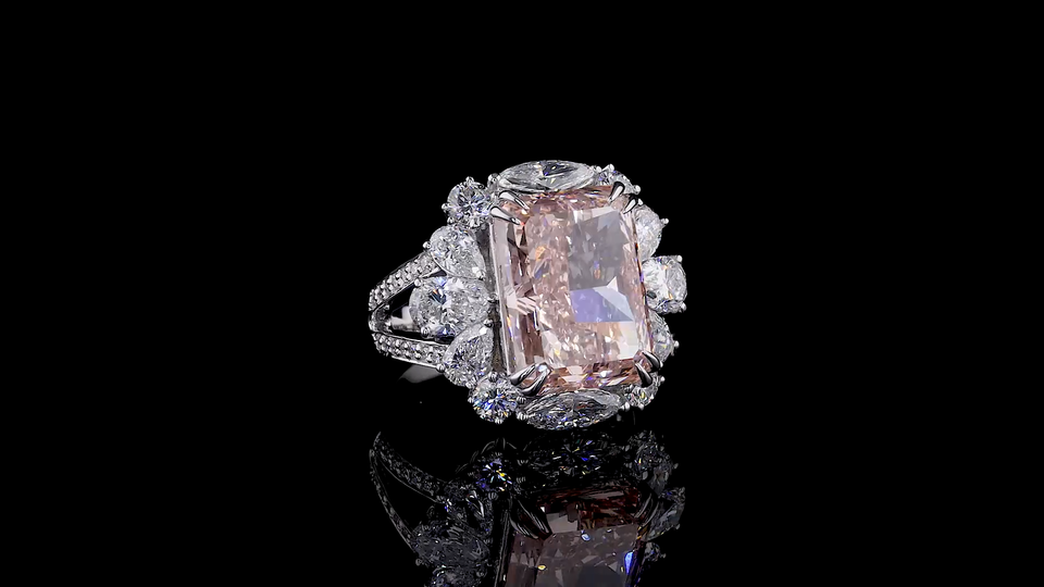 แหวนเพชรทรงรัศมีสีชมพู ทองคำแท้ 14K สำหรับงานหมั้นและงานแต่งงาน เครื่องประดับหรูหรา