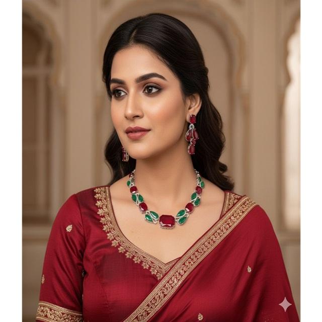 Radiant High Quality Silver Plated Stone Look Design Doublet Necklace Earrings Set Women Traditional Wedding Engagement Gift