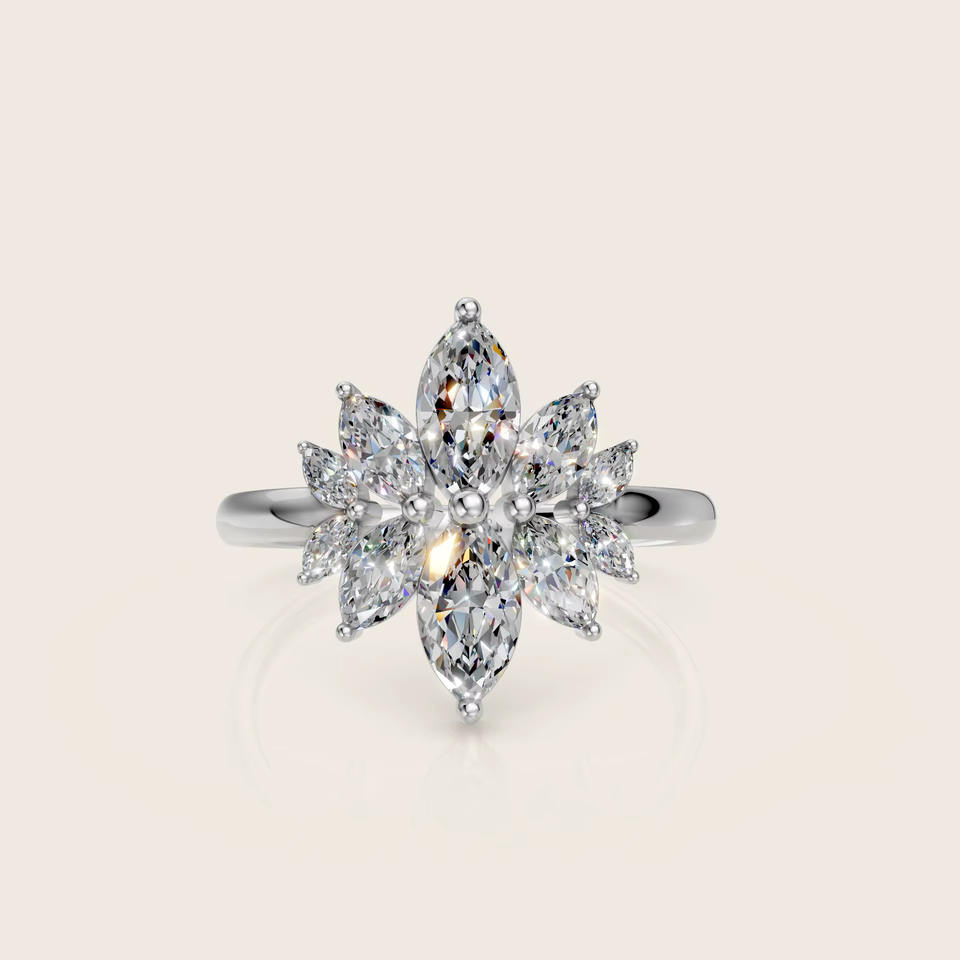 แหวนเพชรทรงมาร์คีส์เรเดียนท์แบบคลัสเตอร์ – แหวนหรูหราดีไซน์ดอกไม้สำหรับงานหมั้นและโอกาสพิเศษสำหรับผู้หญิง เครื่องประดับเพชร