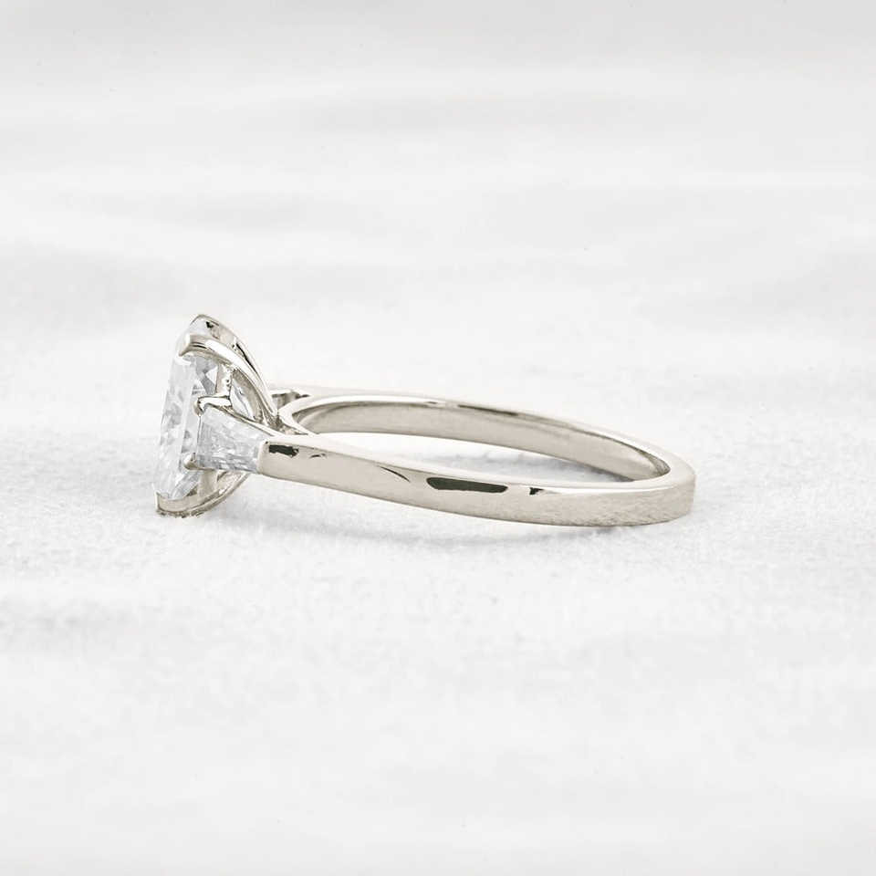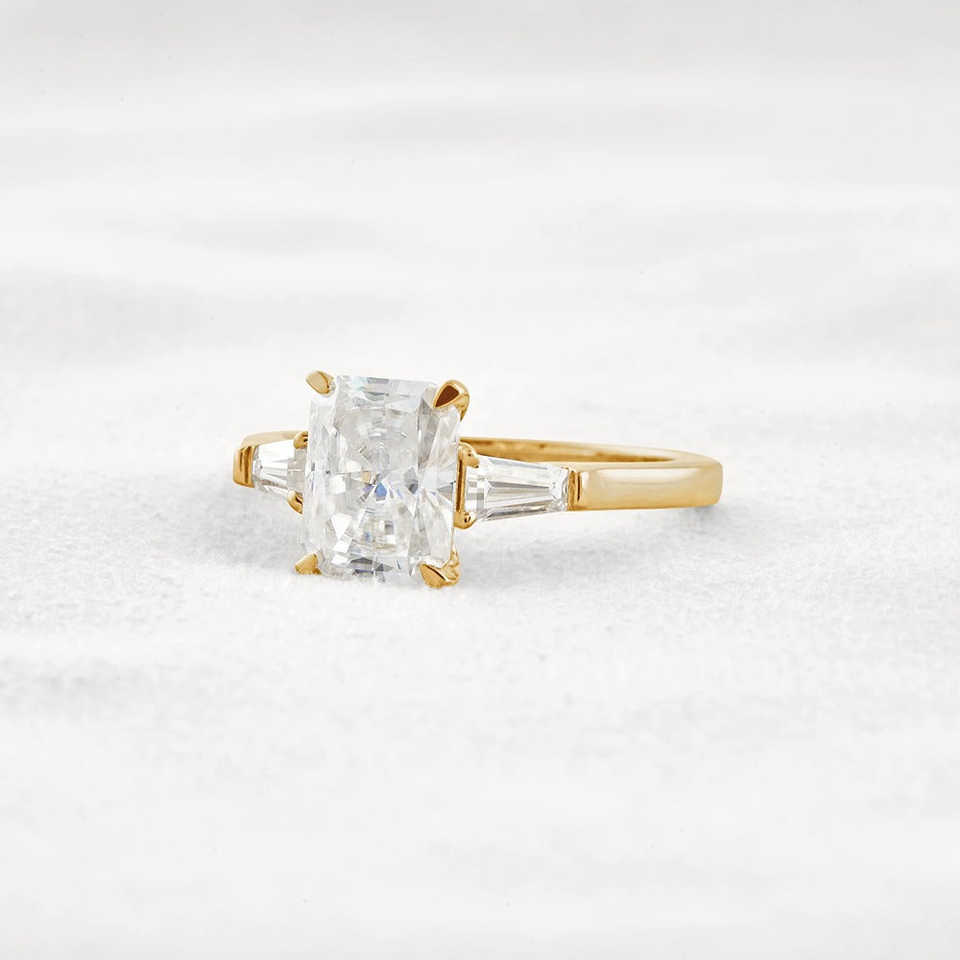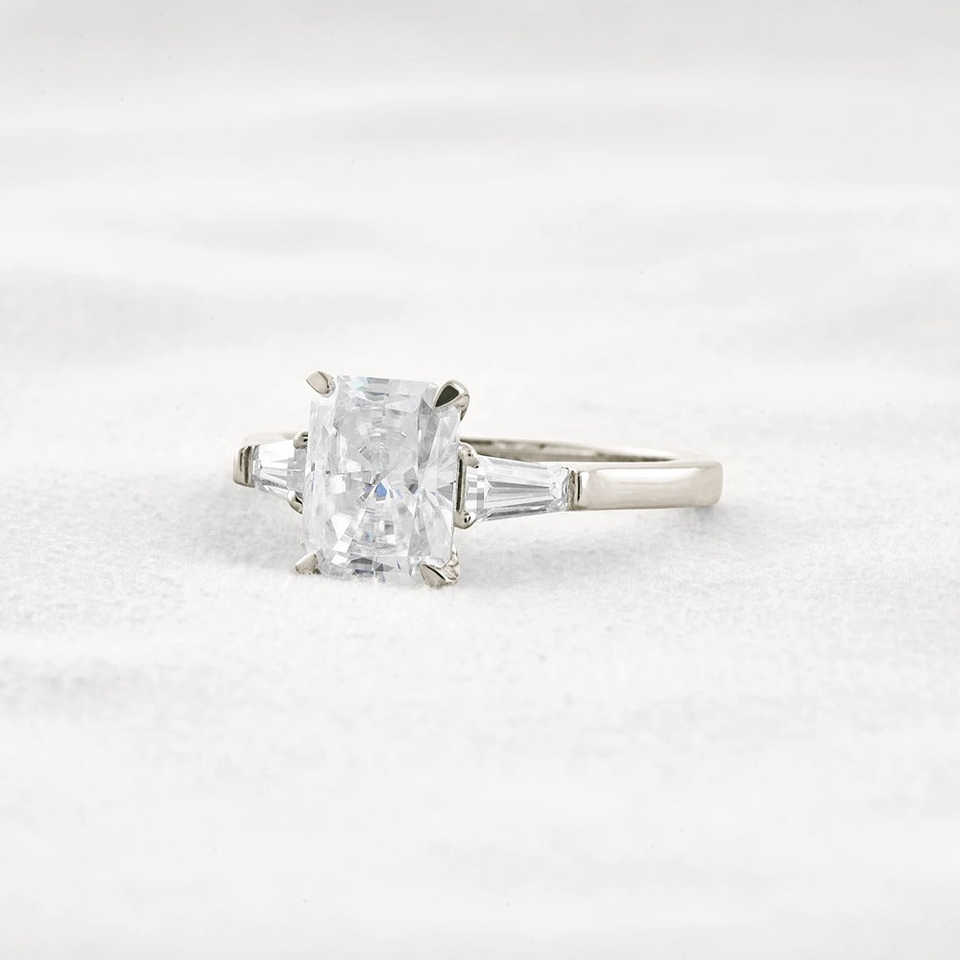 แหวนหมั้นเงินแท้ 925 ประดับโมอิสซาไนต์ทรงเรเดียนท์และทรงบาแก็ตต์แบบสามเม็ด