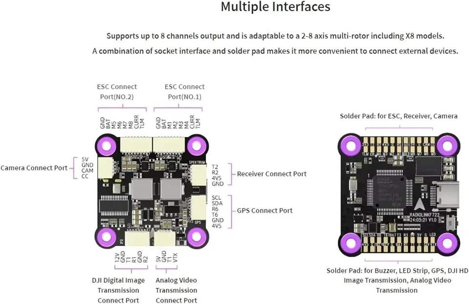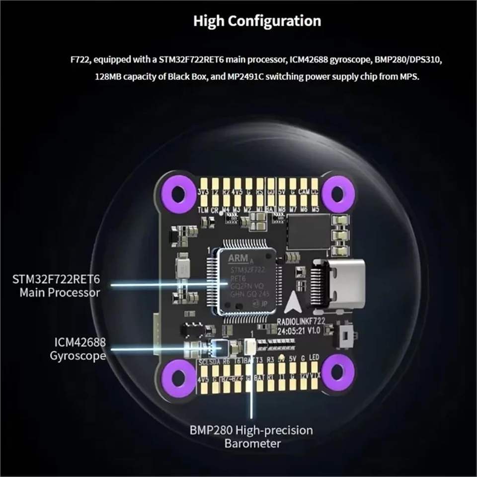 Radiolink F722 ชุดควบคุมการบินสำหรับแข่ง 4in1 55A ESC Stack รองรับ Betaflight INAV Flying Tower สำหรับโดรนแข่ง FPV