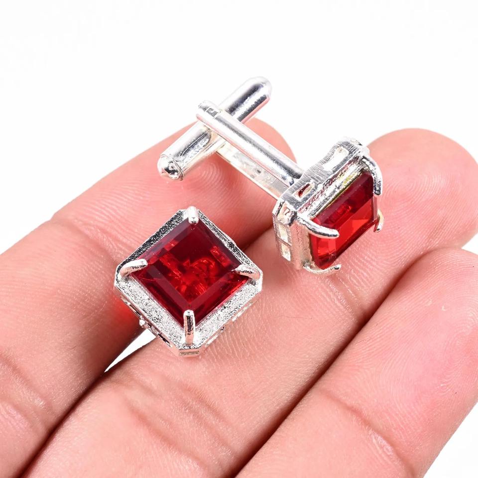 ราฟาย เจมสโตนสีเขียวมรกตคลาสสิกทองขัดเงา 925 เงินหรูหรากระดุมข้อมือผู้ชายเครื่องประดับงานแต่งงานเจ้าบ่าวของขวัญอุปกรณ์เสริมอย่างเป็นทางการ
