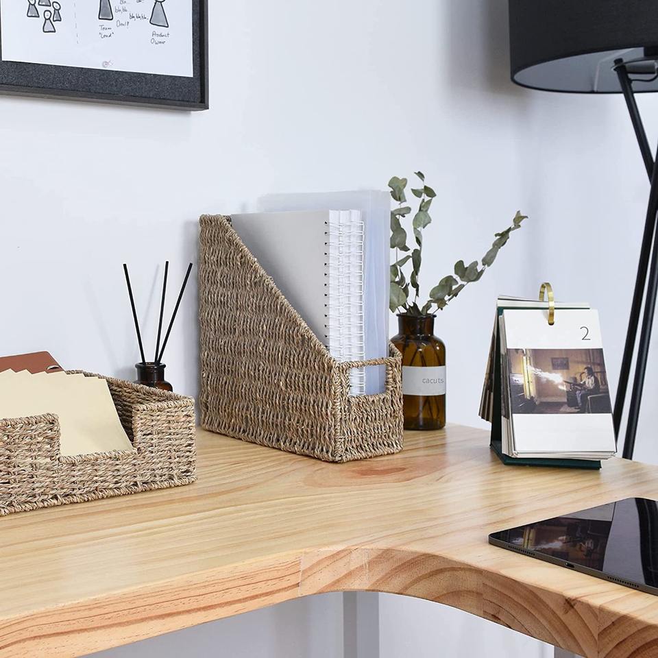 ชั้นวางโบรชัวร์กระดาษแข็งจากหญ้าทะเลชั้นวางโชว์นิตยสารสำนักงานเครื่องเขียนอุปกรณ์เสริมตะกร้า