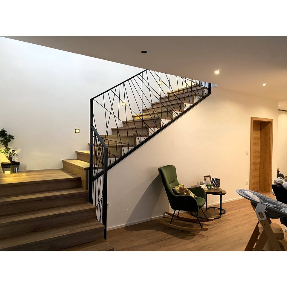การปรับปรุงและก่อสร้างบันไดในร่มดีไซน์ทันสมัยสำหรับห้องนั่งเล่นบันไดตรงและบันไดวน