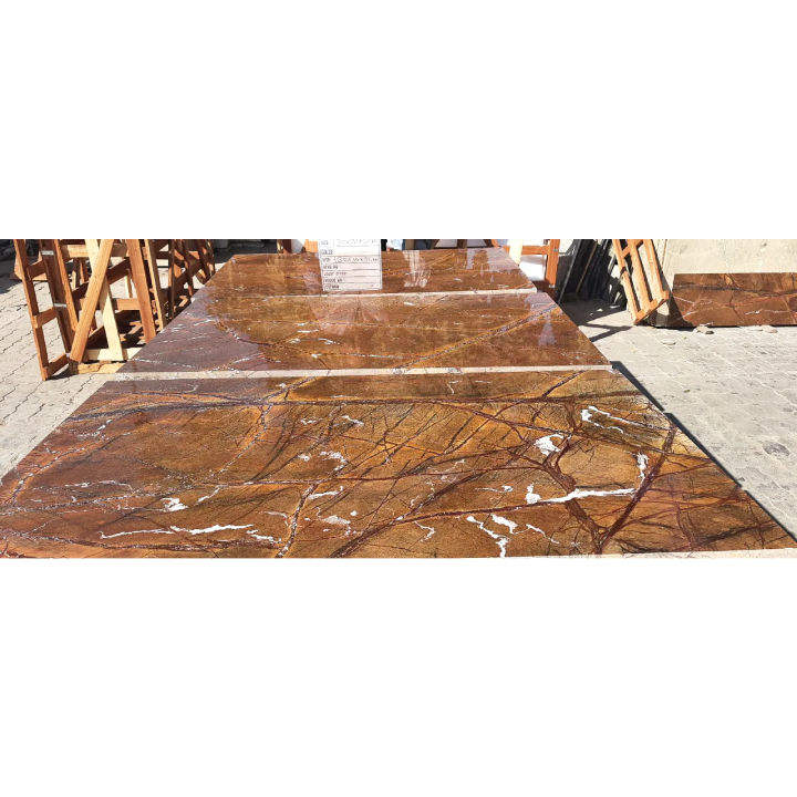 แผ่นหินอ่อนสีทองลายป่าฝนขัดสำหรับห้องครัวและห้องนั่งเล่น