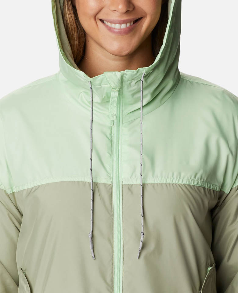 แห้งเร็ว, กันน้ำ, กลับได้, ระบายอากาศ, เป็นมิตรกับสิ่งแวดล้อม, กันลม, บุผ้าสองชั้นลักษณะ