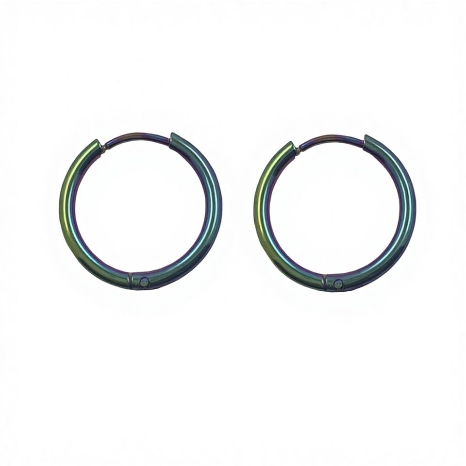 Rainbow 1.6 X 14 mm Fine Hoop Earrings 1 Pair with Hinge Closure 316 Stainless Steel