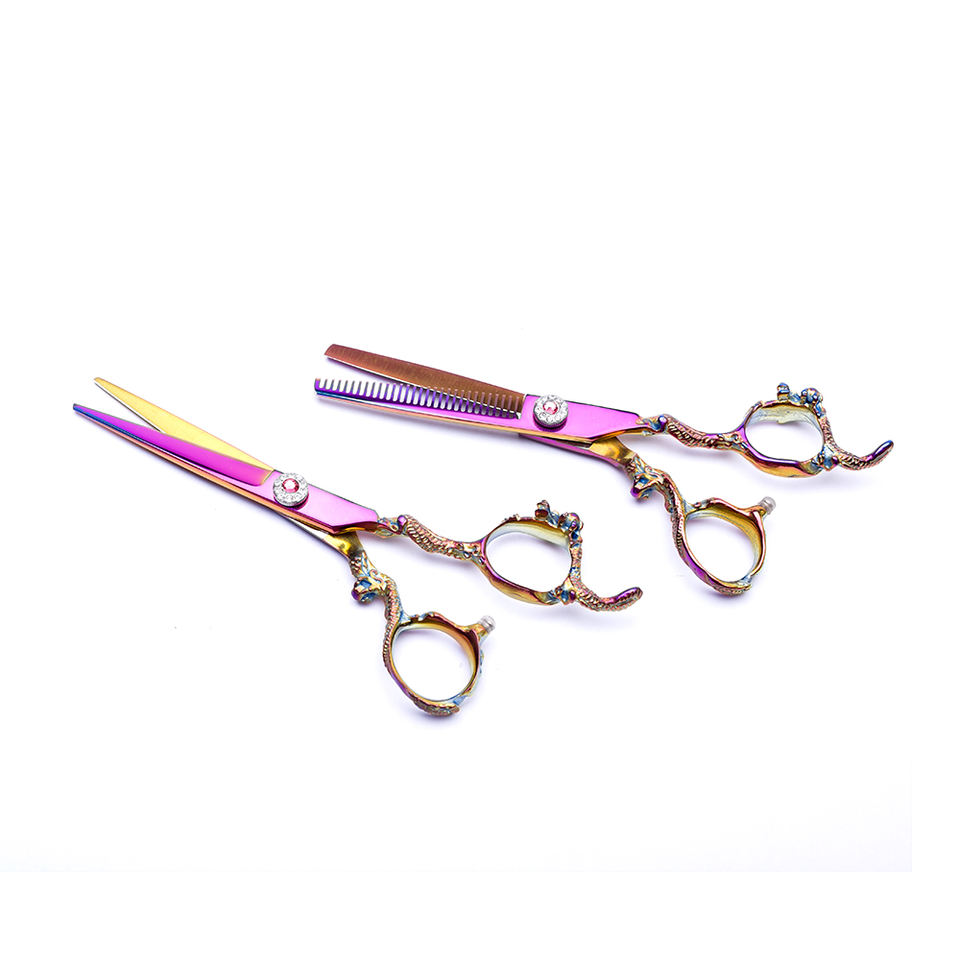 กรรไกรช่างตัดผมพร้อมด้ามจับที่สวยงามใบมีดสแตนเลสปลายแหลมสำหรับตัดผม
