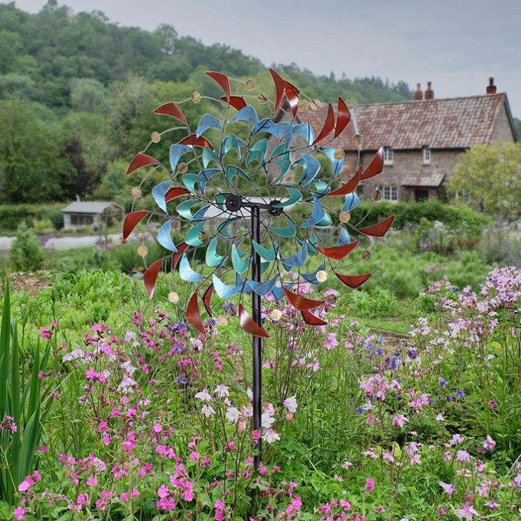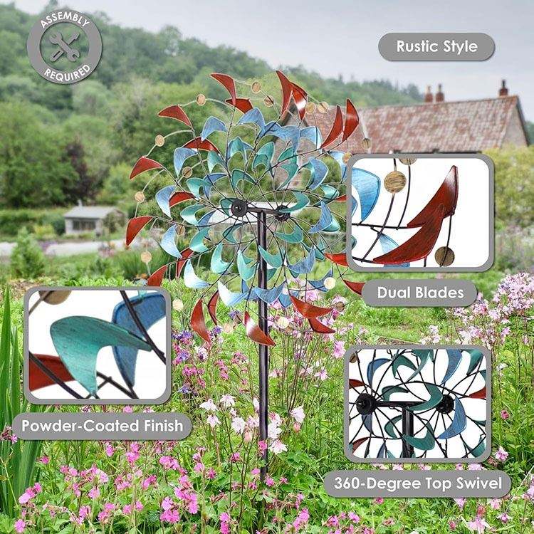 ใบพัดลมโลหะหมุนในสวนสีรุ้งถอดออกได้สำหรับปรับความสูงได้ใบมีดเคลื่อนที่แบบคู่หมุนได้360องศา