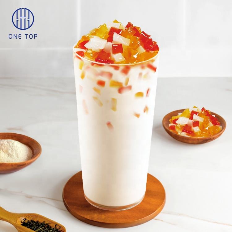 วัตถุดิบสำหรับชานมไข่มุก ท็อปปิ้งเยลลี่มะพร้าวสีแดง ส้ม ขาว ยี่ห้อ ONE TOP พร้อมรับประทาน น้ำหนัก 3.8 กก. บรรจุขวดจากไต้หวัน เพิ่มความสนุกสนานด้วยสีสันสดใส