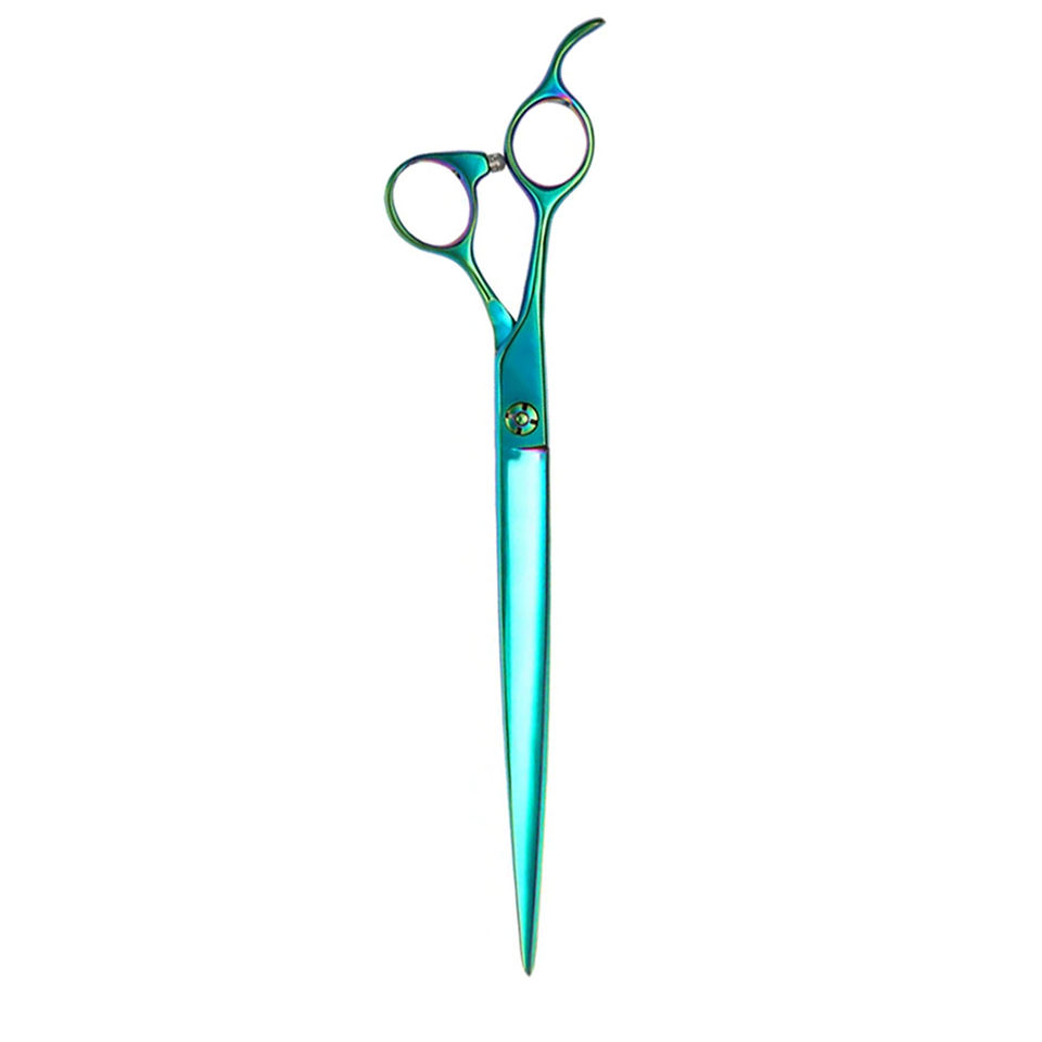 สีรุ้งเคลือบสัตว์เลี้ยงกรูมมิ่งใบมีดตรงกรรไกรสัตว์เลี้ยงกรรไกรกรูมมิ่งผมพร้อมสกรูปรับและส่วนที่เหลือของนิ้ว