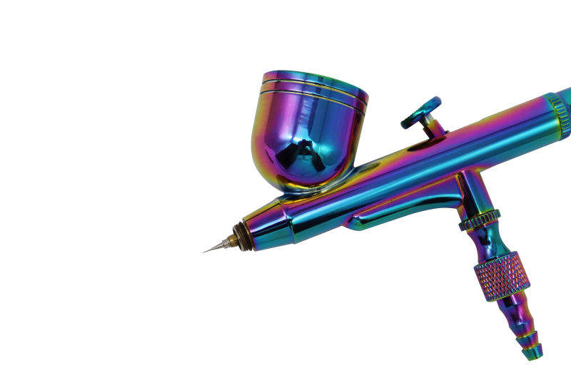ชุดแอร์บรัชแบบป้อนสีด้วยแรงโน้มถ่วงแบบสองระบบ สีรุ้ง ขนาด 0.3 มม. พร้อมถ้วยด้านบนขนาด 7 มล. สำหรับงานตกแต่งรถยนต์ งานศิลปะแบบจำลอง และตกแต่งเค้ก