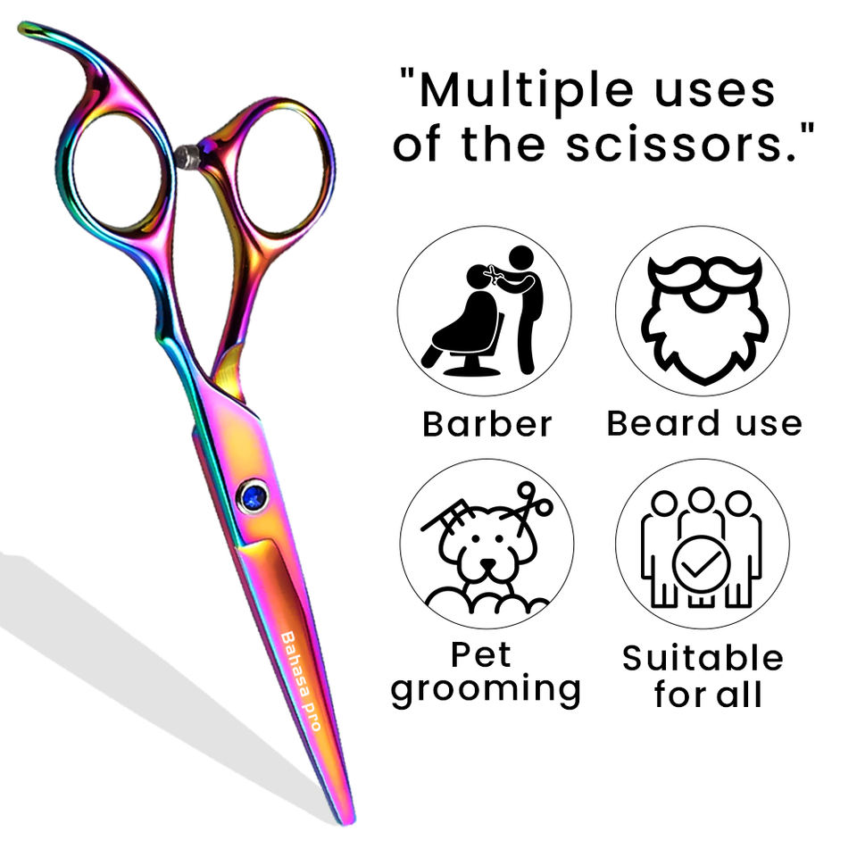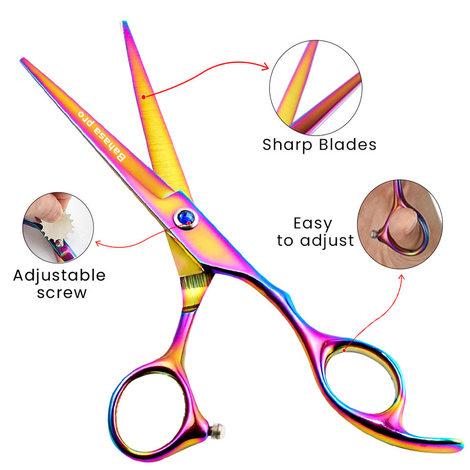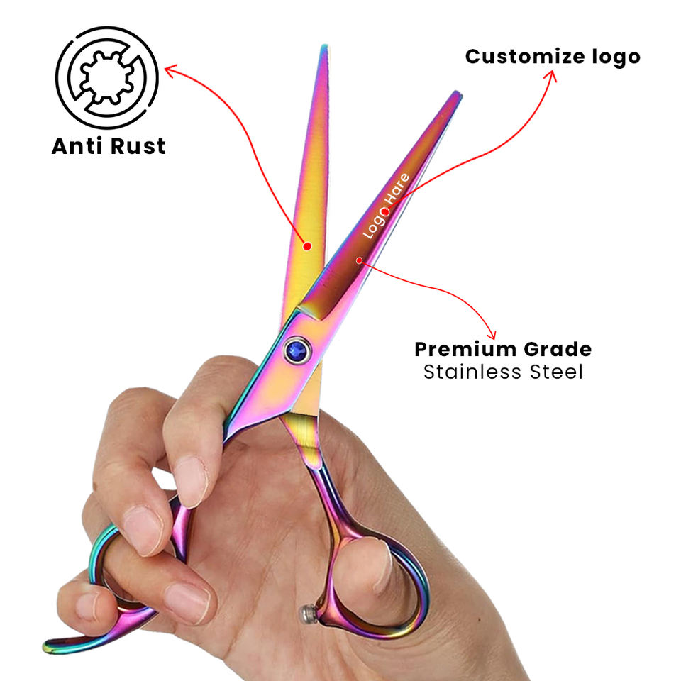 กรรไกรตัดผมสแตนเลสสีรุ้งอุปกรณ์จัดแต่งทรงผมมืออาชีพช่างตัดผมกรรไกรตัดผม
