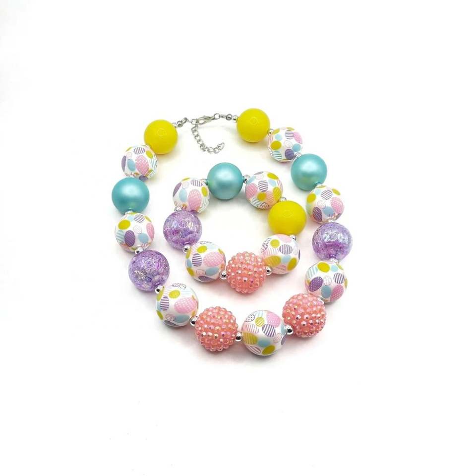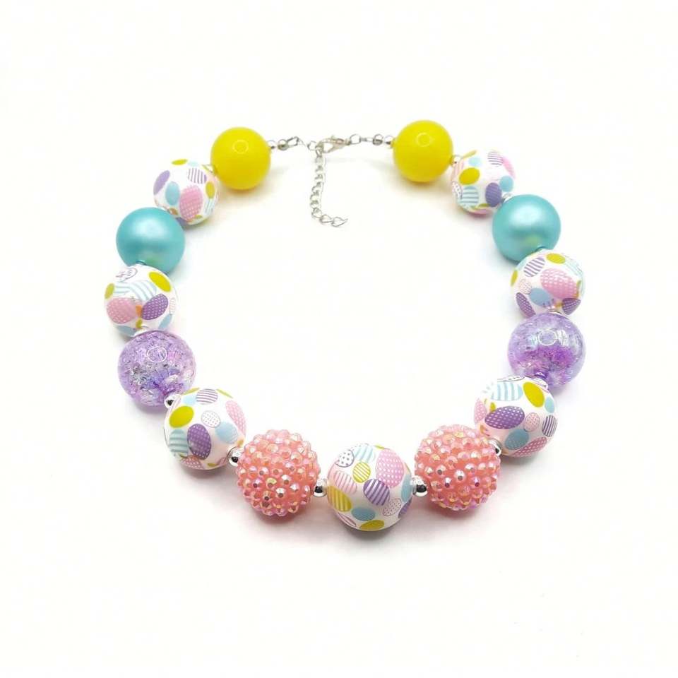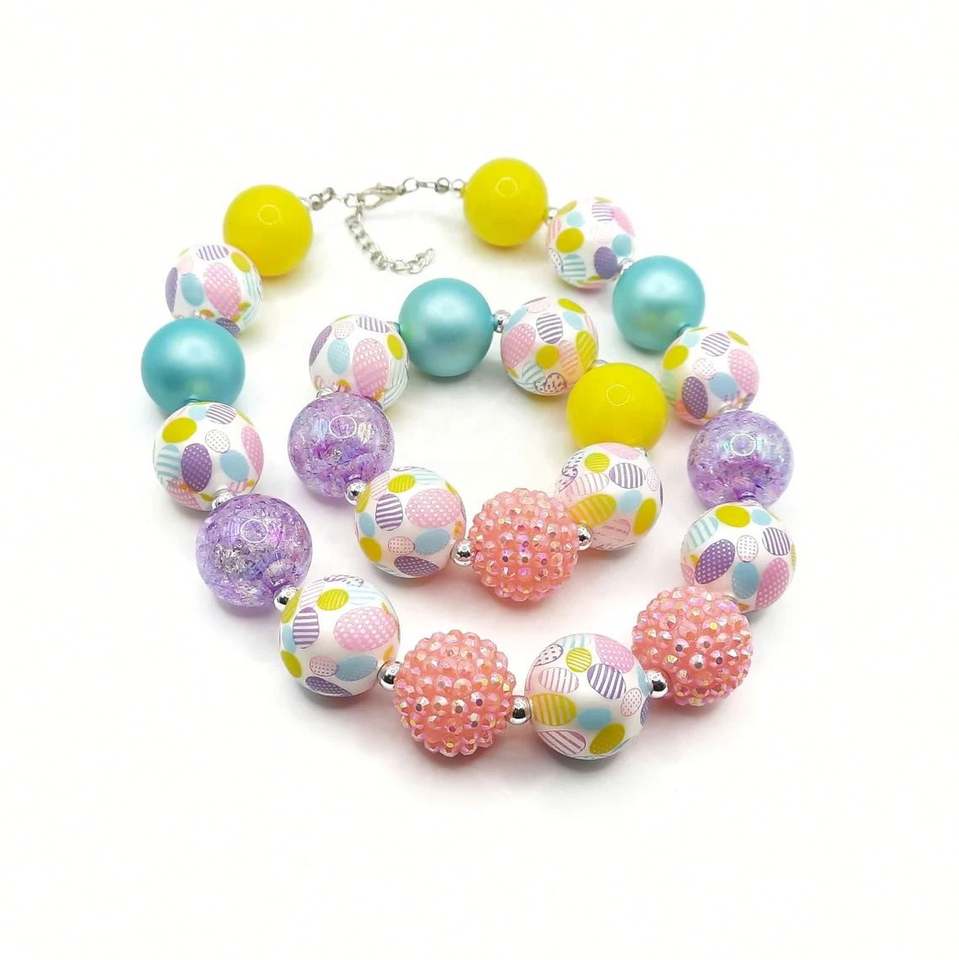 ชุดเครื่องประดับสร้อยคอลูกปัดสีรุ้งสีสันสดใสสำหรับเด็กผู้หญิงชุดเครื่องประดับสำหรับเด็กวัยหัดเดินของขวัญ