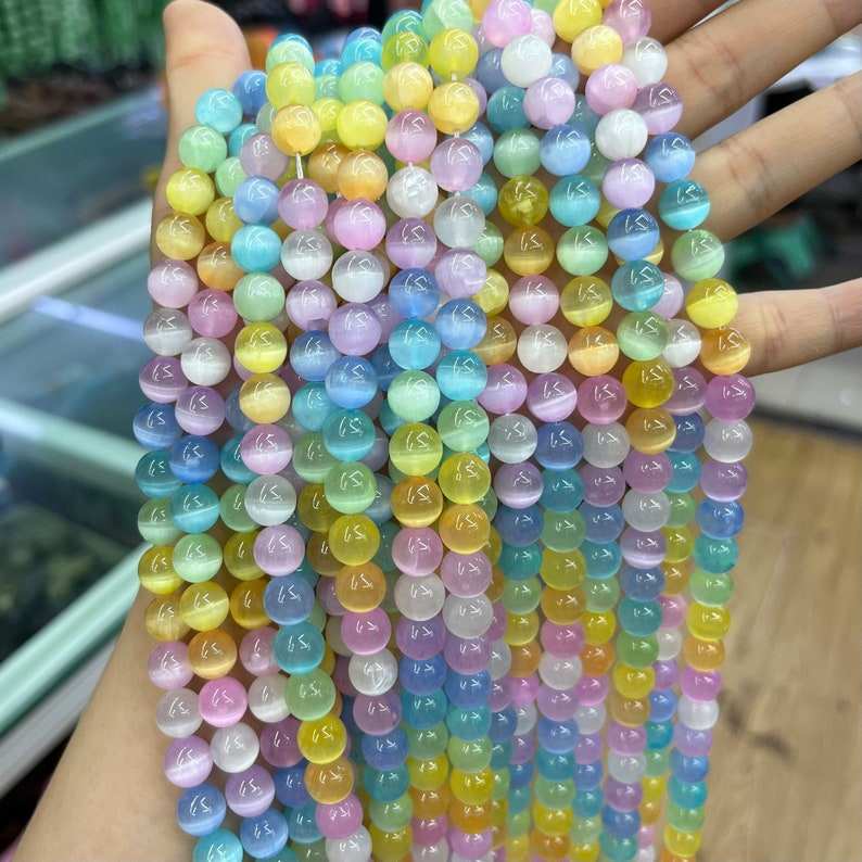 คีย์เวิร์ด:ลูกปัดสีรุ้งแวววาวสำหรับตาแมว selenite ลูกปัดอัญมณีธรรมชาติ