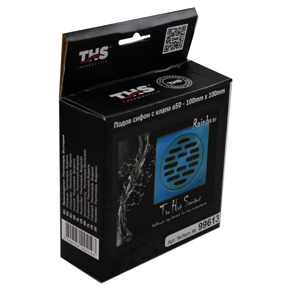 ท่อระบายน้ำเรนโบว์ 100×100 มม. Ø50 ป้องกันกลิ่น | ทองเหลืองพรีเมียม | เทอร์โมสไตล์ THS ®